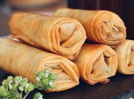 Rollitos de masa filo knafe relleno con pino de berenjenas